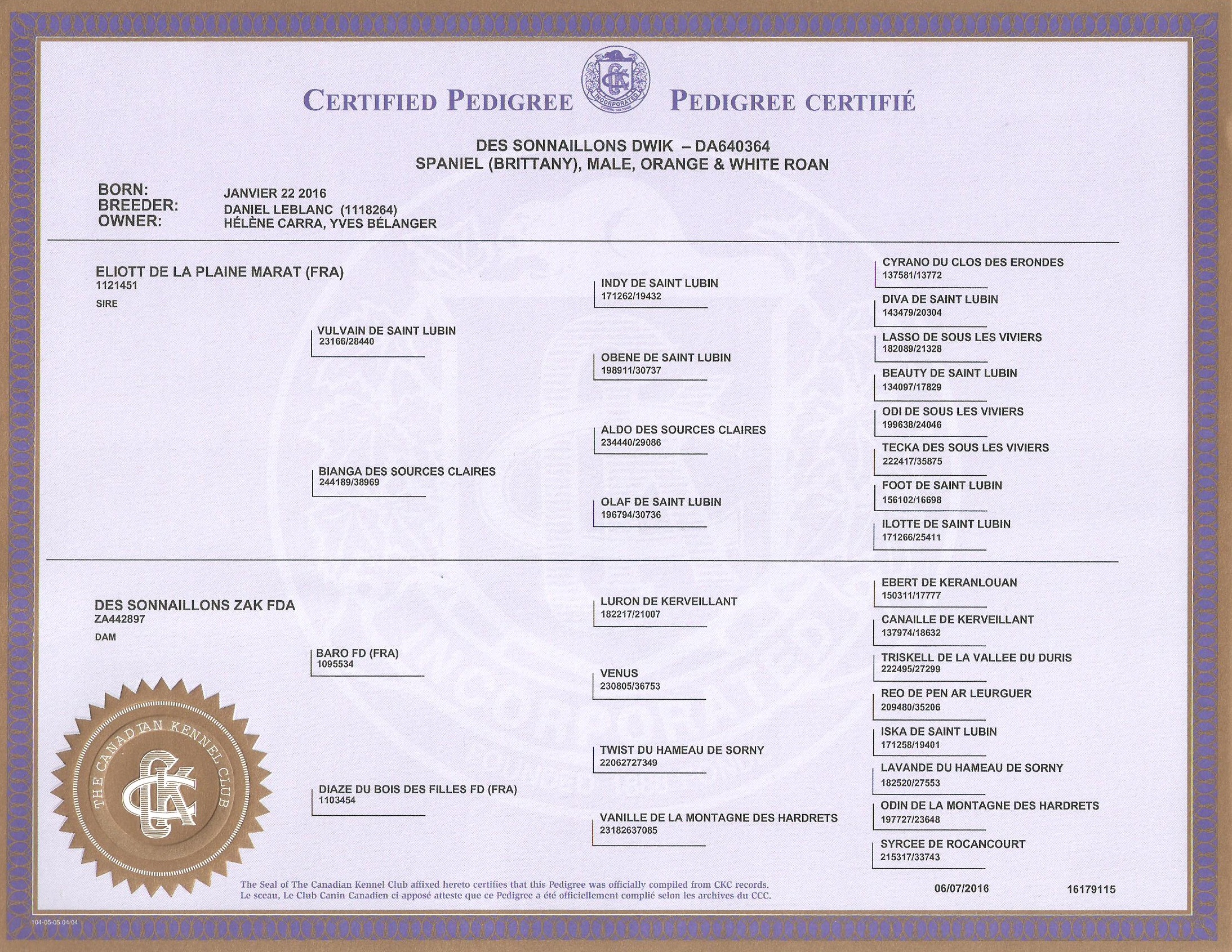 En ce qui a trait à sa santé, il a été certifié «Good» par l’OFA pour ses hanches, «Normal» pour ses coudes et il n’y avait aucun problème pour ses yeux lors de l’examen. Fardoche a obtenu la mention très bon lors de son évaluation au standard. Vous pouvez consulter son pedigree du Club Canin Canadien.
